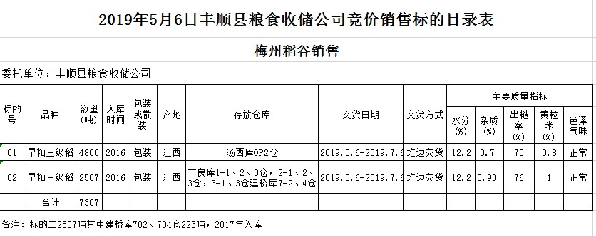 文件下載:2019年5月6日豐順縣糧食收儲公司稻谷銷售