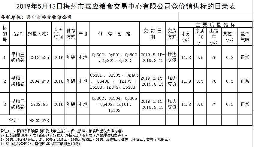 受客戶委托,梅州市嘉應(yīng)糧食交易中心有限公司定于2019年5月13日(星期一)舉辦糧食競價交易會,興寧市糧食收儲公司擬銷售2016年早秈稻8320.273噸。