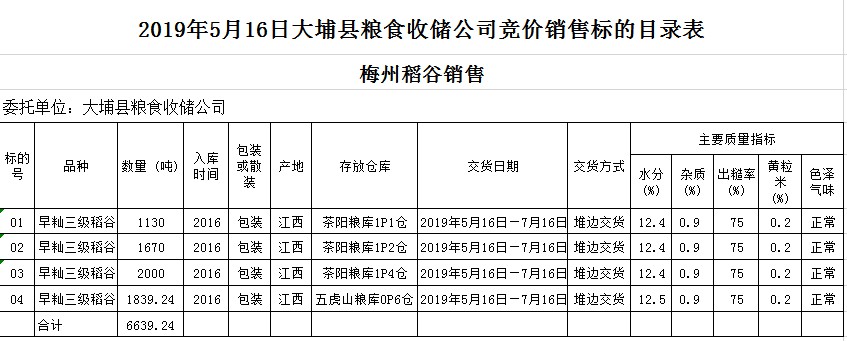 2019年5月16日大埔縣糧食收儲(chǔ)公司稻谷銷售