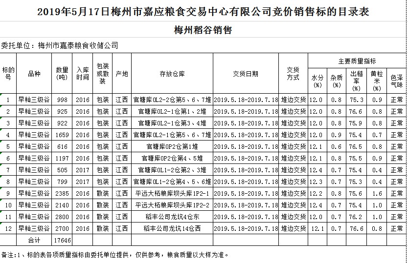 2019年5月17日梅州市嘉泰糧食收儲(chǔ)公司稻谷銷(xiāo)售