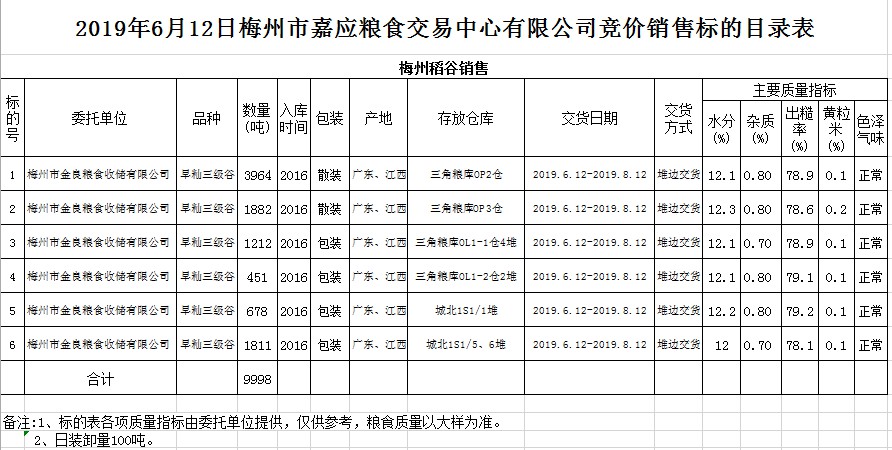 2019年6月12日梅州市金良糧食收儲(chǔ)有限公司稻谷銷售