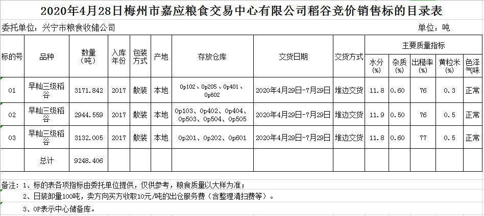 受客戶委托,梅州市嘉應(yīng)糧食交易中心有限公司定于20204月28日(星期二)舉辦糧食競價(jià)交易會(huì),興寧市糧食收儲(chǔ)公司擬銷售2017年早秈稻9248.406噸。