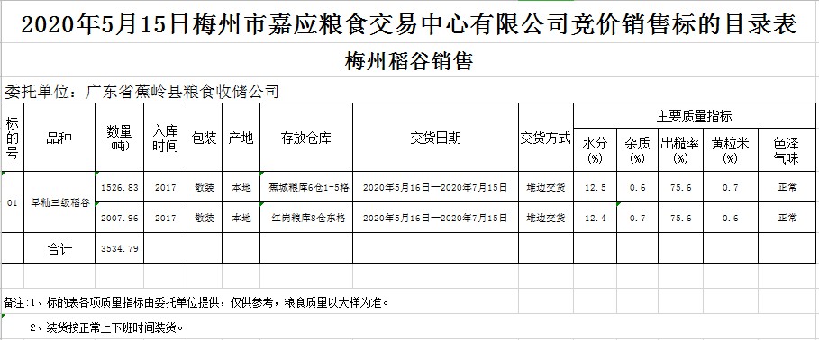 2020年5月15日廣東省蕉嶺縣糧食收儲(chǔ)公司稻谷銷售