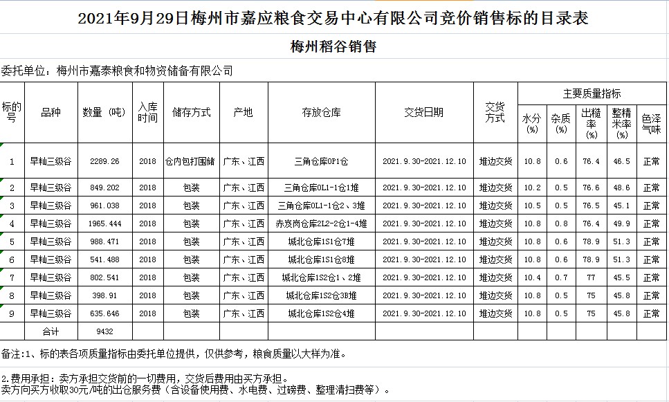 受客戶委托,梅州市嘉應(yīng)糧食交易中心有限公司定于2021年9月29日(星期三)舉辦糧食競價交易會。梅州市嘉泰糧食和物資儲備有限公司擬銷售2018年早秈稻9432噸。