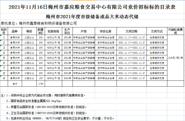 梅州市2021年度市級儲備成品糧油動態(tài)代儲及包干輪換費用公開招投標公告