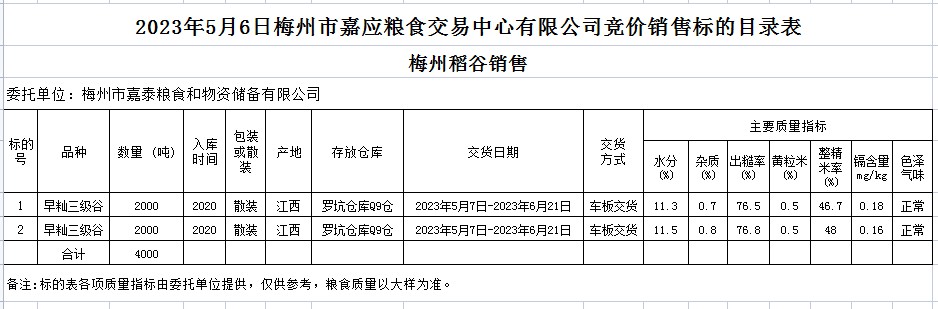 2023年5月6日梅州市嘉泰糧食和物資儲(chǔ)備有限公司稻谷銷售