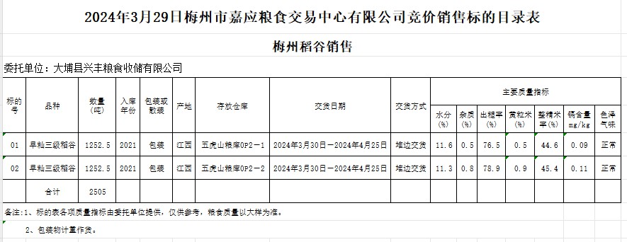 2024年3月29日大埔縣興豐糧食收儲有限公司稻谷銷售