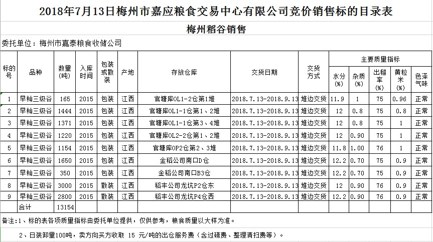 2018年7月13日梅州市嘉泰糧食收儲(chǔ)公司稻谷銷售